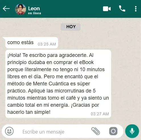 Paz Mental Irrompible: Ya no te despertarás con la angustia de "cómo voy a lograrlo". Aprenderás a silenciar el ruido de la duda, recuperando el control de tu energía para enfocarla solo en lo que suma.